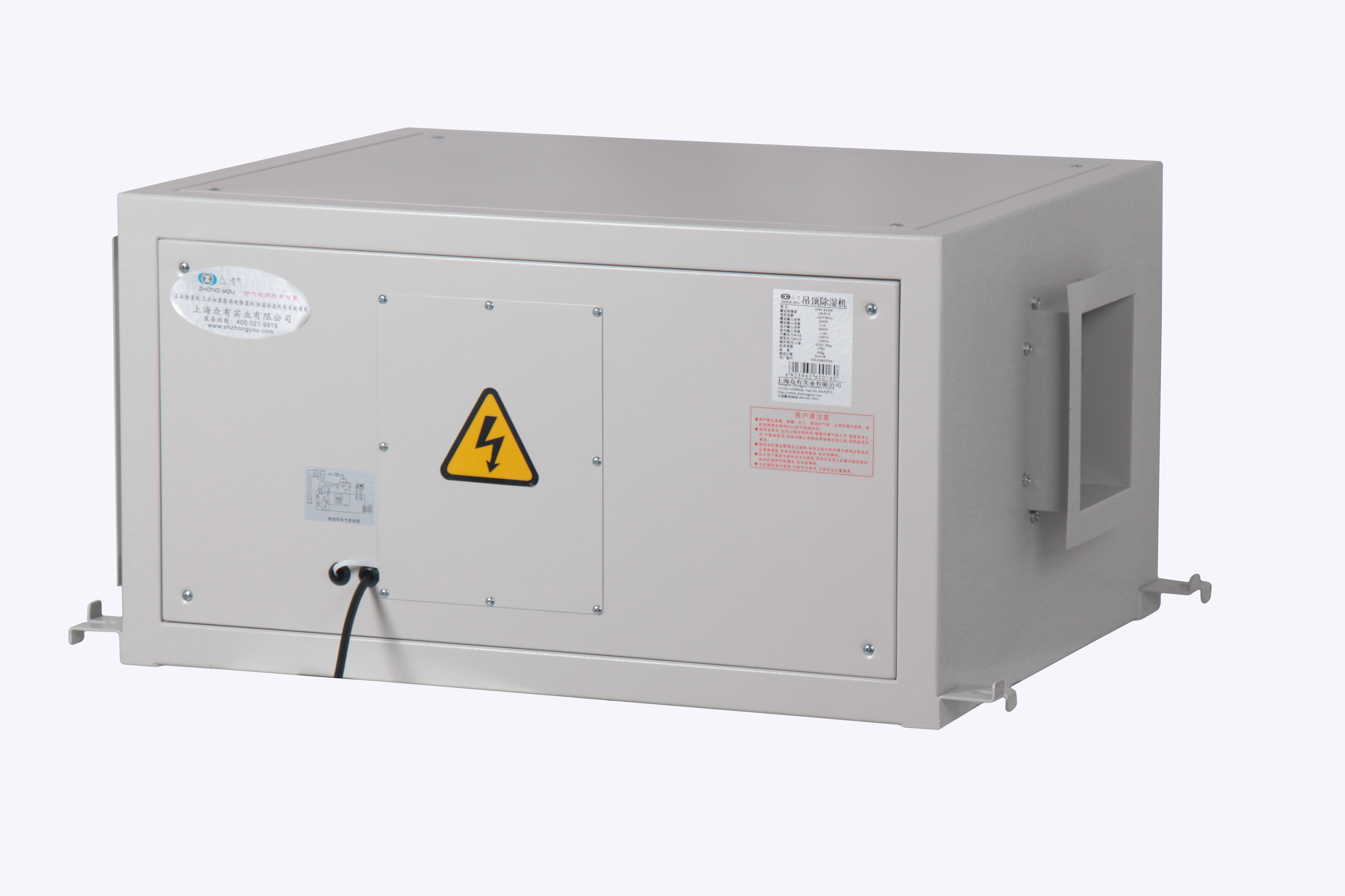 吊裝吸頂式除濕機(jī)除濕機(jī)一切的安裝及維修保養(yǎng)作業(yè)都可在吊頂除濕機(jī)的側(cè)面進(jìn)行,使吊頂除濕機(jī)所需要的維護(hù)空間變小。