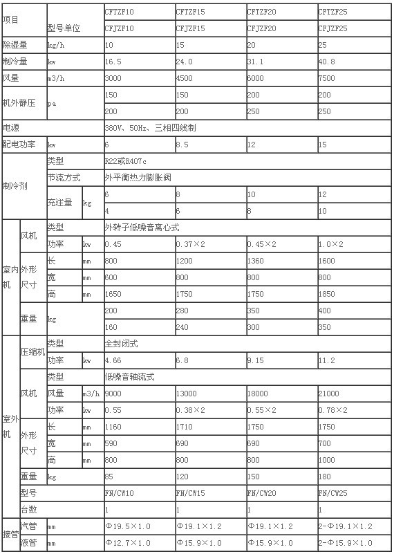 風(fēng)冷降溫型、降溫除濕機技術(shù)指標(biāo)<1>