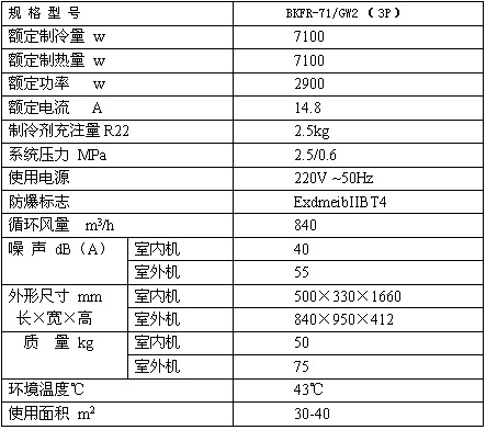 BKFR-71/GW2柜式防爆空調(diào)技術(shù)參數(shù)