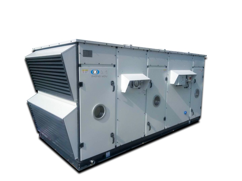屋頂式空調(diào)機組是一種大、中型單元整體式機組,由壓縮冷凝段、蒸發(fā)過濾段、送風段三段組成。按功能可分為:單冷型、電加熱型、恒溫恒濕型、恒溫恒濕潔凈型、熱泵型等類型。