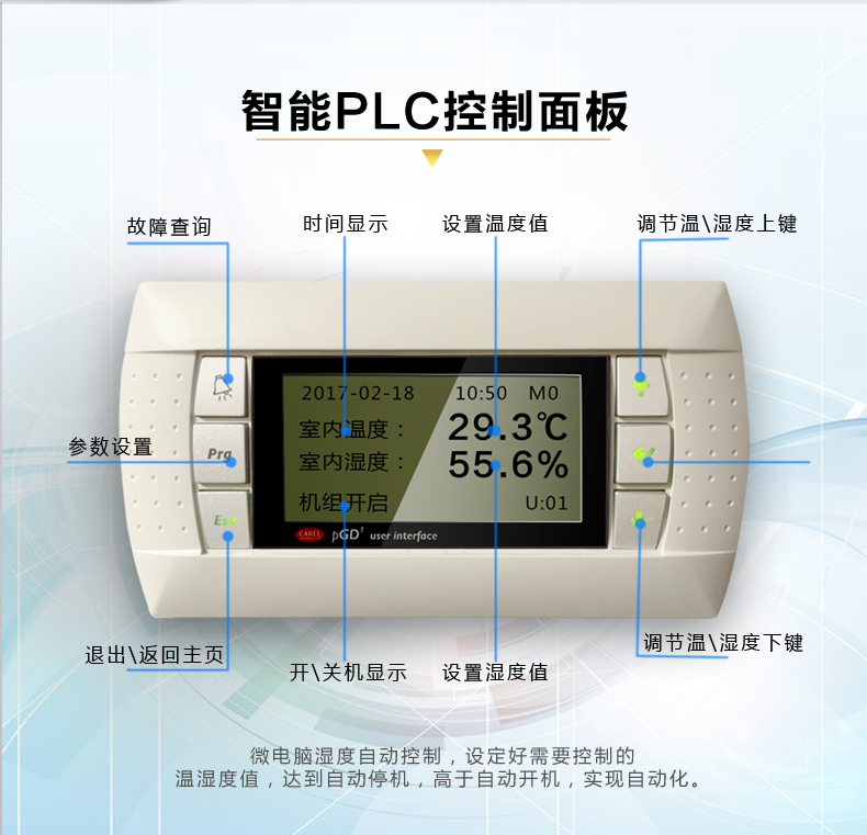 根據(jù)室內(nèi)溫濕度的設(shè)計(jì)要求,實(shí)時(shí)檢測室內(nèi)的溫濕度、室外溫度和系統(tǒng)的運(yùn)行狀態(tài),根據(jù)室內(nèi)溫濕度的變化和室外溫度條件,自動(dòng)轉(zhuǎn)換系統(tǒng)的運(yùn)行模式,以保證室內(nèi)的溫濕度要求和系統(tǒng)安全運(yùn)行。
